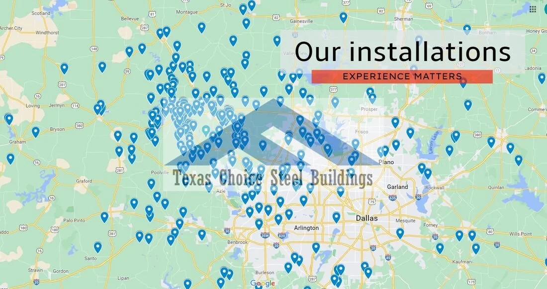 These are Texas Choice Steel Buildings installations around the Dallas / Fort Worth metro-plex.