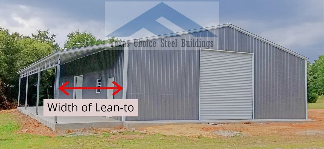 60x40x16 with 18x40x13 lean-to. Five 14x14 end wall frame outs, four windows, and one steel walk in door